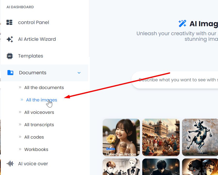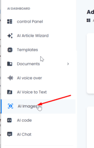 1. Access the AI Images Page: On the main interface of your account, locate the left-hand menu and select the “AI Images” option.