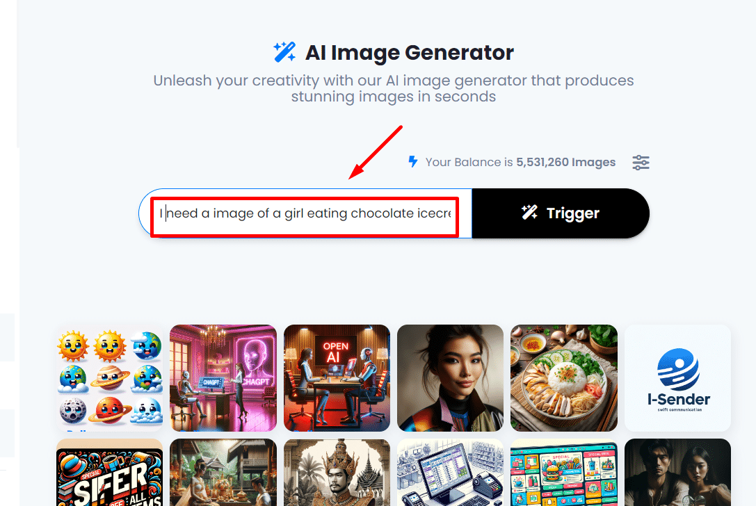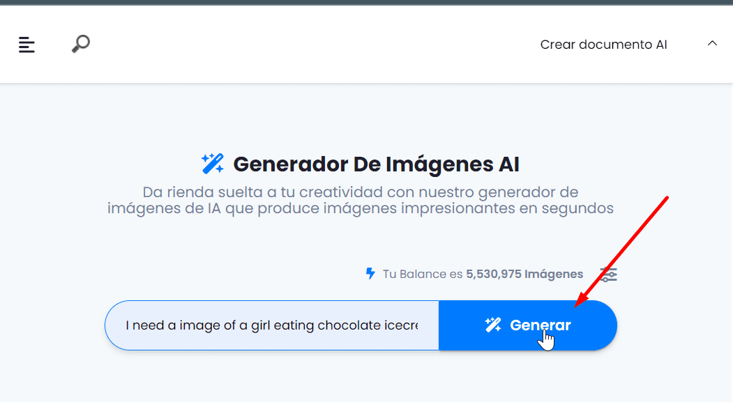 2. Input the Description: Within the AI Images page, you will find a button. Click on it to enter specific details about the image you need. Provide a detailed description, including relevant information.