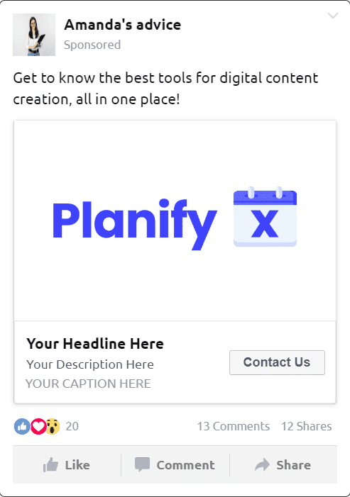 - Ad Creatives: Utilize PlanifyX’s ad templates to ensure high engagement and conversion rates.