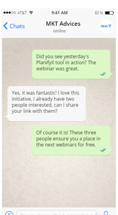 This strategy is very intriguing and positions you as an expert in (Your Business). It consists of the following: you can offer your current customers to join the platform through your link and even encourage them to share it with their own clients. In return, you can provide them with certain benefits, such as one-on-one consultations to teach them how to use the platform’s tools, ‘VIP’ access to your exclusive material, early access to your upcoming courses, special discounts, etc. The idea is for them to receive a ‘Bonus’ for referring others to you.