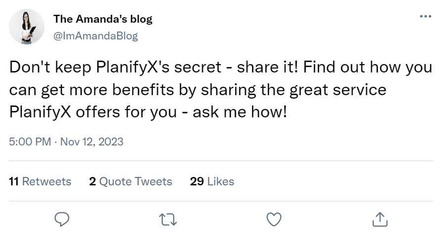 Host online webinars and workshops where you can demonstrate how to use (Your Business) to solve common problems. Nowadays, webinars and workshops are trendy because they allow viewers to interact almost privately with the ‘instructor.’ This can help you address questions that arise in real-time and even build enough trust for them to join the platform. Keep in mind that there are no other platforms that do what (Your Business) does. At the end of the webinar, share your affiliate link for them to join the platform with you, and you can even send them the presentation you used, where your link is included on various slides.