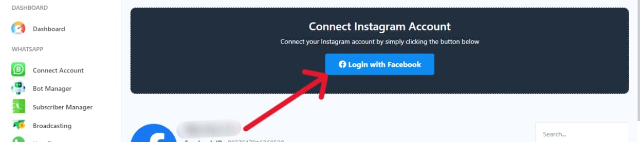 Click on the “Login with Facebook” button to easily import your Facebook pages & Instagram account.