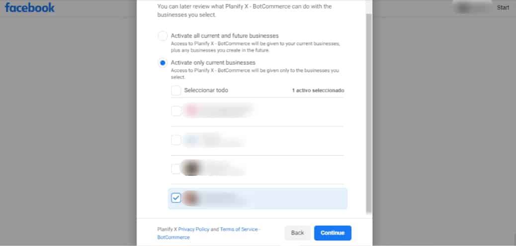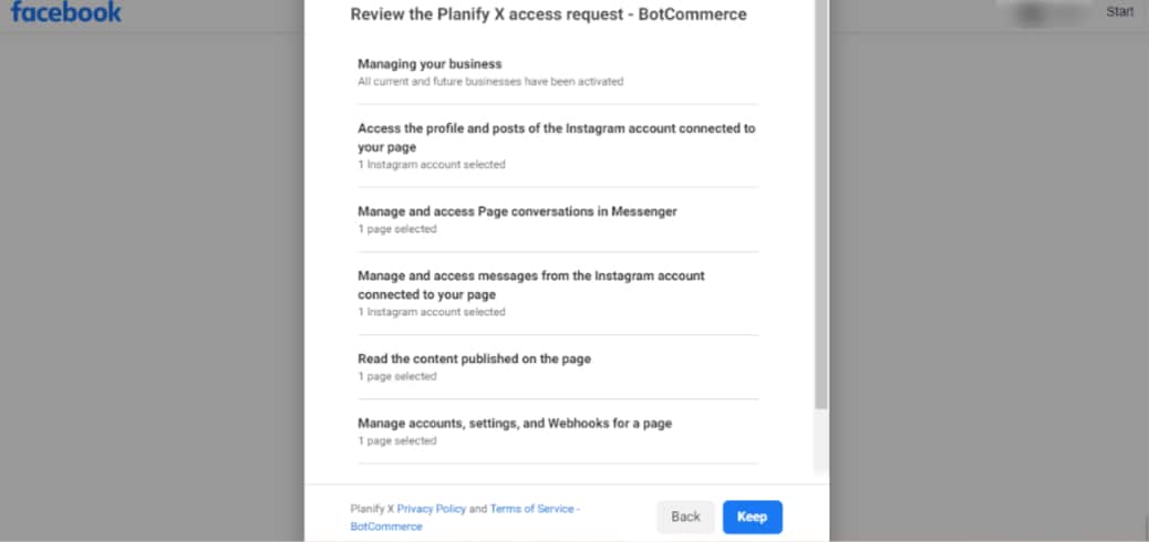 Select the Facebook pages and Instagram accounts you want to import.