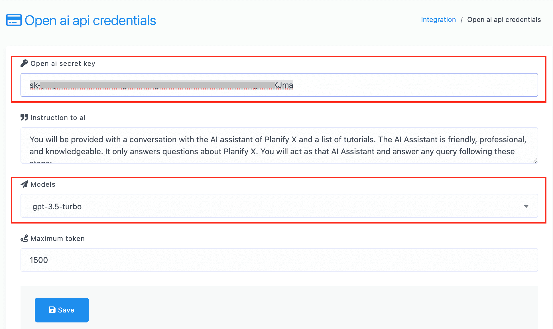 When you are ready, click on Save. We recommend checking your OpenAI account frequently to make sure you always have available tokens for the AI chatbots to work.