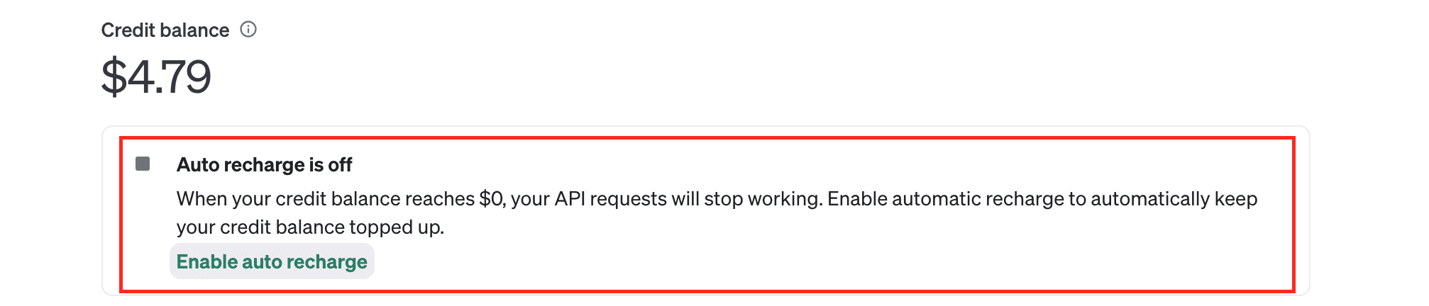 3.- Enable Auto-recharge. You can optionally enable automatic recharge to automatically keep your credit balance topped up. To do this, go back to the Overview section, and click on the ‘Enable auto recharge’ button below your credit balance.