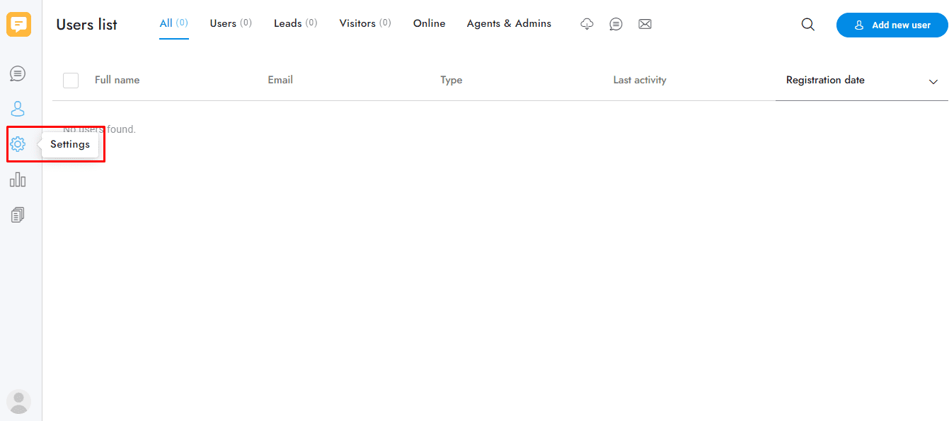 1 Click on settings button. You will find it on the left side tool bar.
