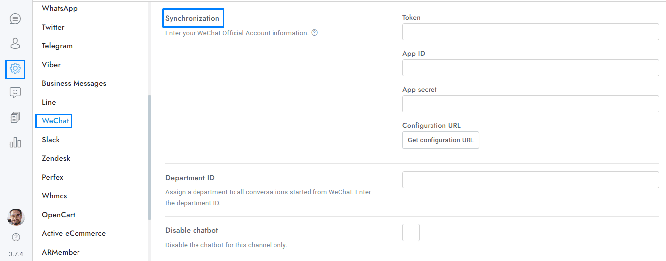 Welcome to our guide on integrating WeChat with Chat! This tutorial walks you through the steps to activate WeChat, register your Service account, and configure synchronization settings.