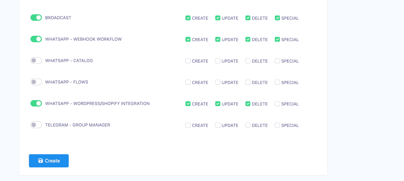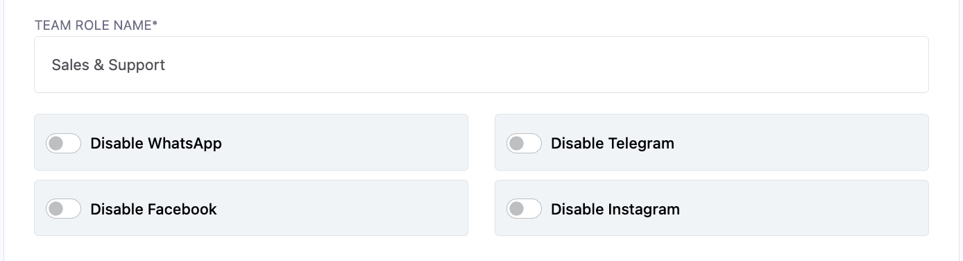 Give the role a name. Then, indicate if you would like to ban the people assigned to this role from a particular app’s tools (Facebook, Instagram, WhatsApp or Telegram). If you want them to access all, leave this part blank.