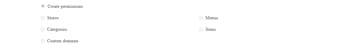 The Create permissions refer to which kinds of content they will be able to generate. Will they be able to create QR Codes? AI Documents? Payment Processors? Select all that apply.