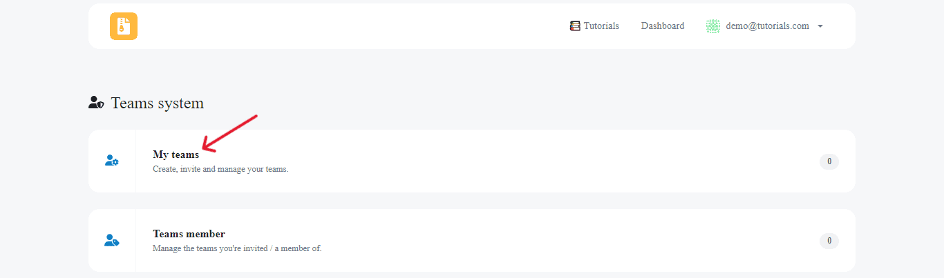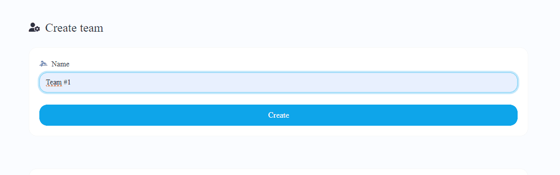 Give your team a name and click on Create. Your first team is ready! Now, you just have to invite its members. Leave the Team page open. We will need it later.