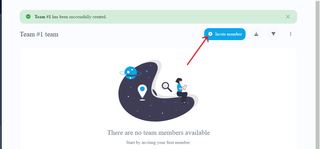 Inside the Team page, click on the Invite Member button.