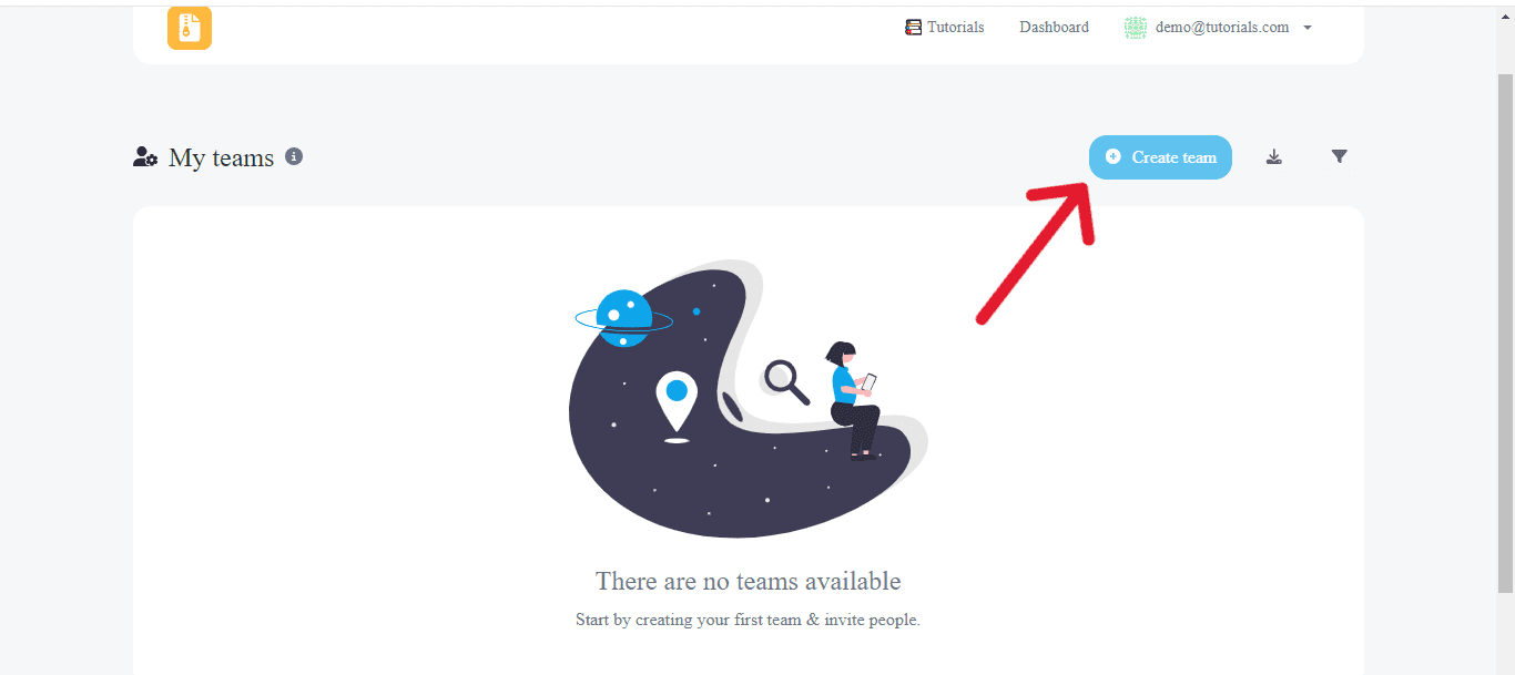 Now, click on the Create Team button to create your first team.
