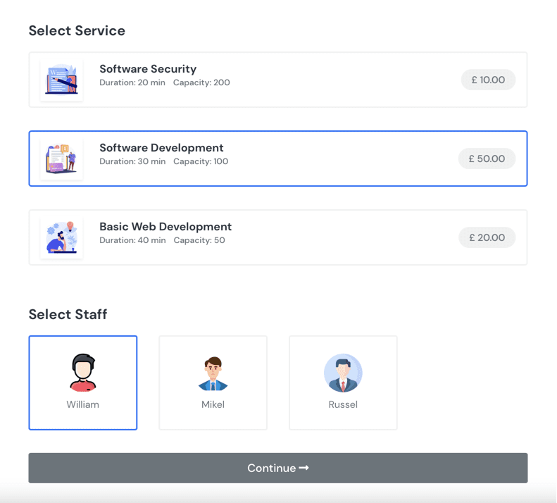 Clients can select services, dates, and available times: Clients can view your real-time availability and choose the time that suits them best.