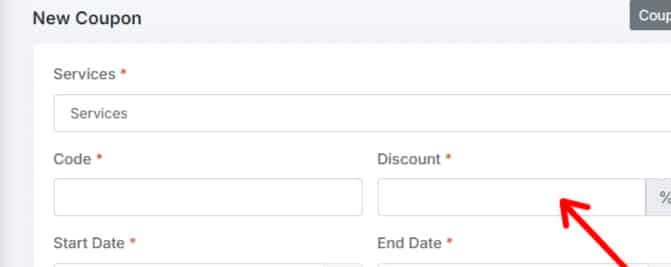 Select Service: Choose the service to which you want to apply the coupon.