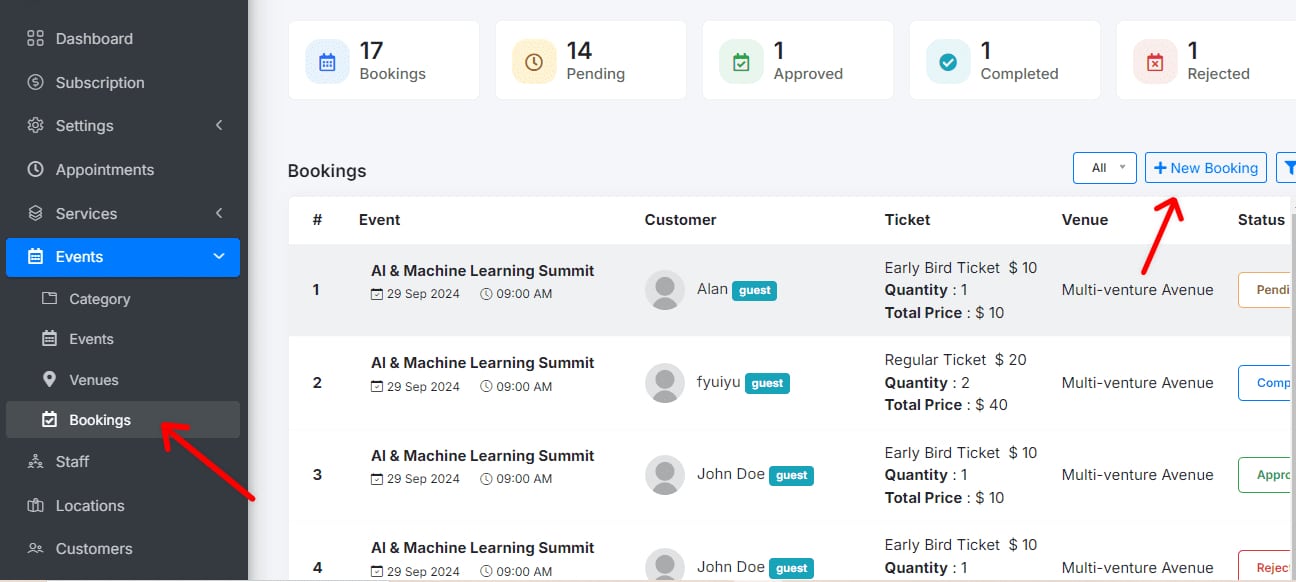 Add New booking: Click on Add New bookings.