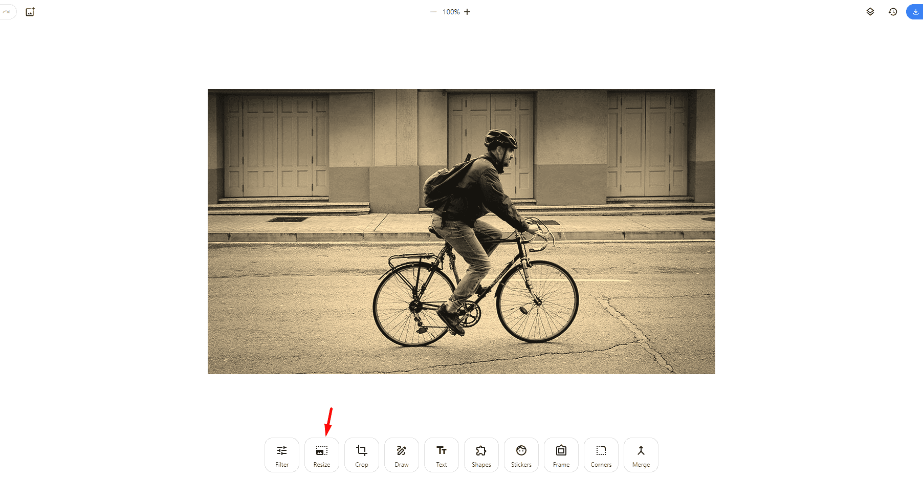 Step 2: Select the “Resize” Tool