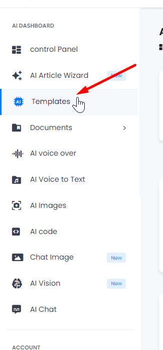 1.- Access the Templates. Go to the menu on the left side of the interface and click on “Templates”.