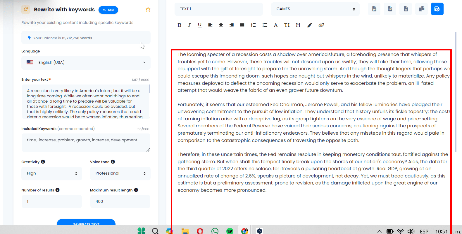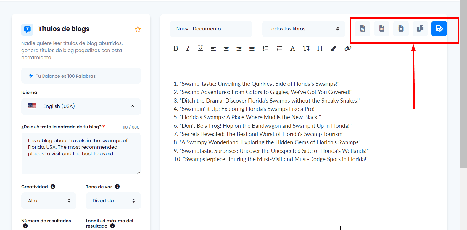 8.- Finish and Manage the Result. Remember, you can export the text in formats like Word, PDF, text file, or copy it directly. Experiment with this tool to breathe new life into your existing texts.