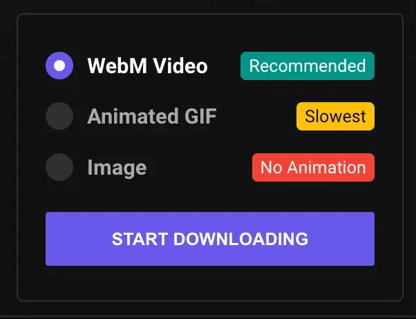 When you’re happy with what you’ve created, you can click on the Download button on the bottom right to open the download panel. You can export in WebM video, animated GIF or as a static image for your current frame.