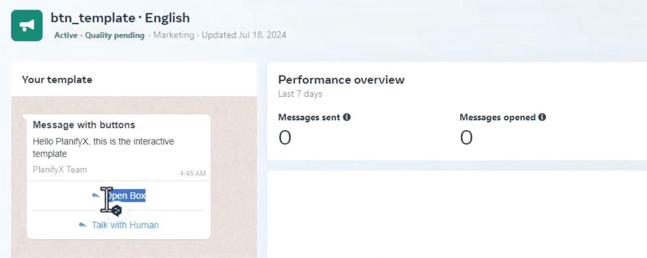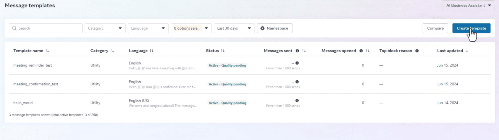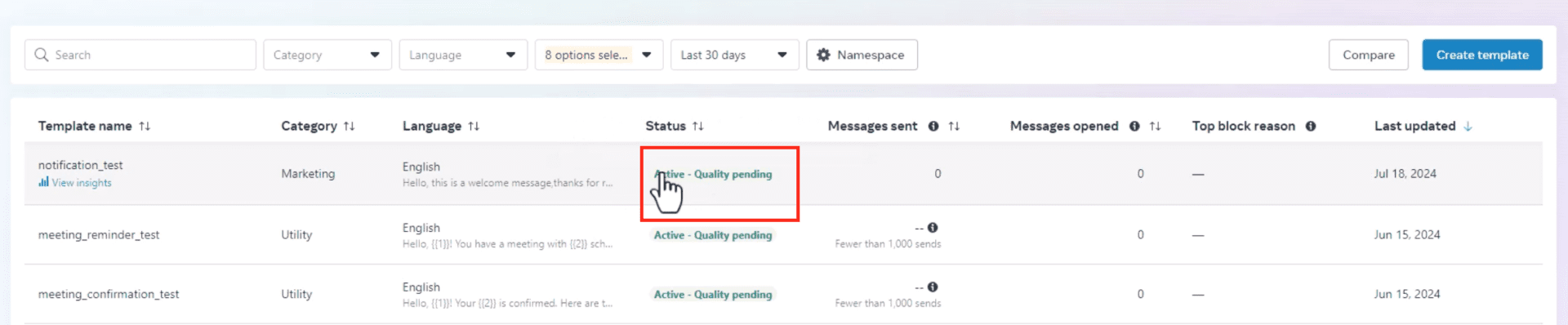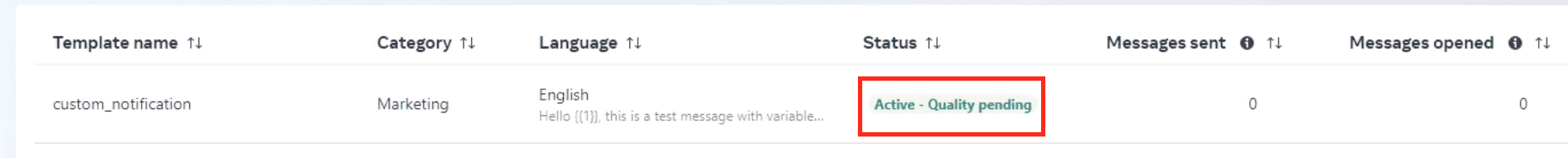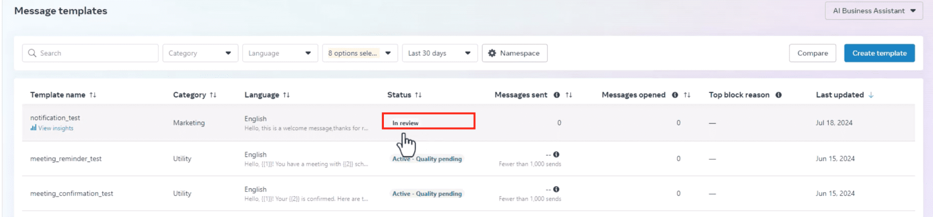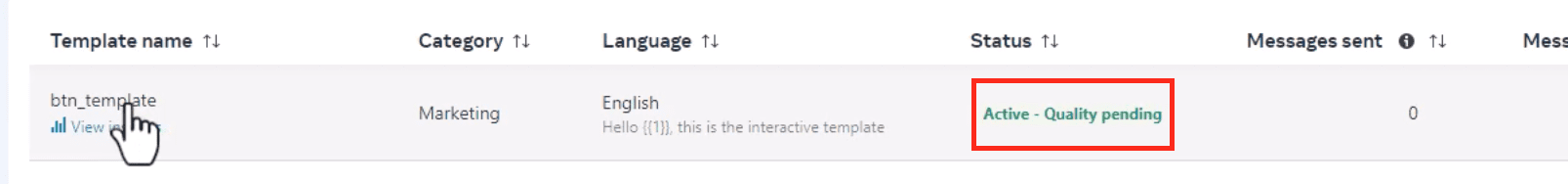 Now, wait for the template to be approved. While it’s under review, we can’t use it.