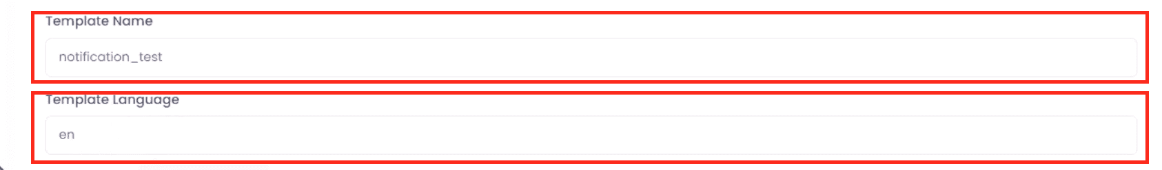 Add the template name exactly as created in Meta Template Manager and the language code you obtained previously.