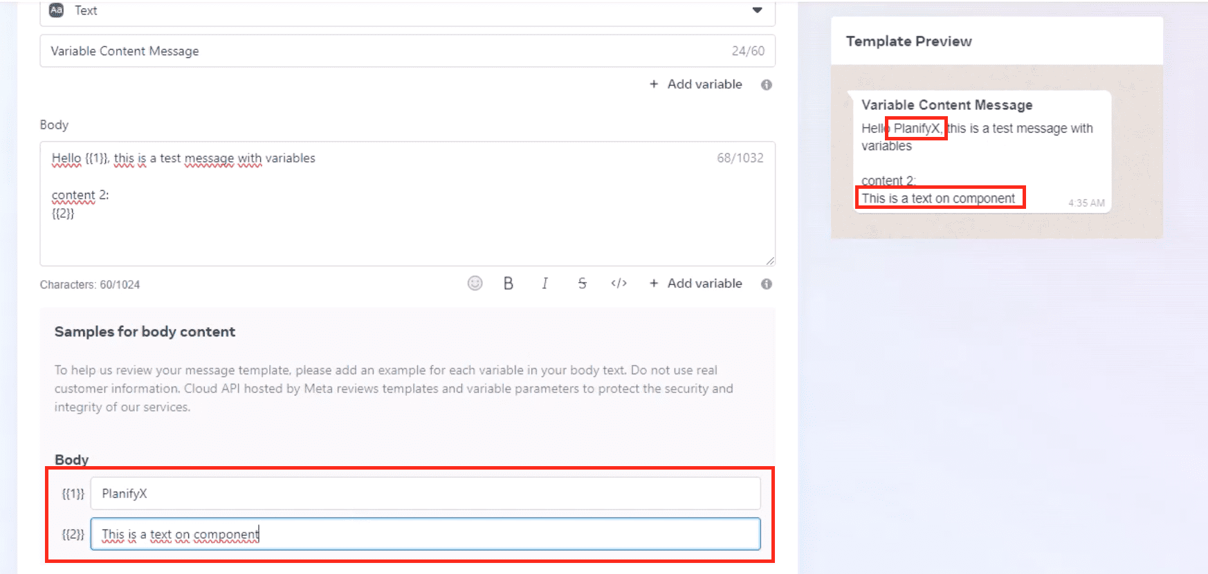 In this section, we’ll explore how to use variables in WhatsApp template messages to create personalized and dynamic content. Variables act as placeholders within a message template that can be replaced with specific information for each recipient, such as their name or other personalized details. This feature allows you to send tailored messages to a large audience without creating multiple templates, enhancing the relevance and engagement of your communications. Let’s dive into the steps for setting up and sending a template message with variables.