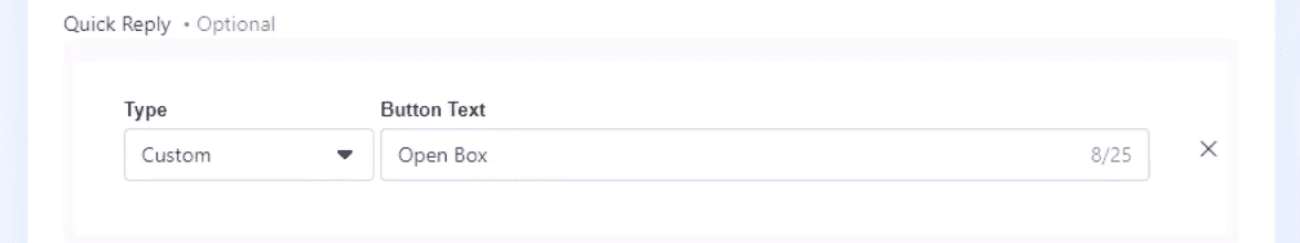 Customize the button text further if desired. For instance, you can change “quick reply” to something more specific like “open box,” depending on the action you want the user to take.