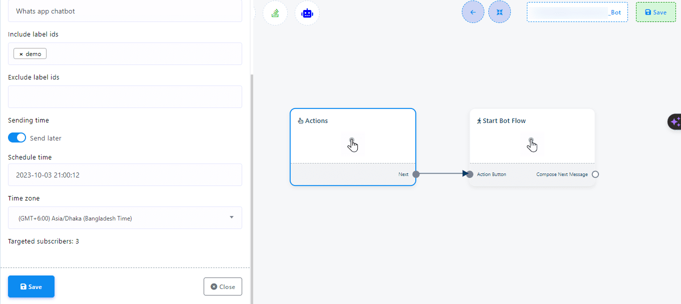 Scheduling: Specify the exact ‘Schedule Time’ and ‘Time Zone’ for your message to ensure it’s sent at the most opportune moment.