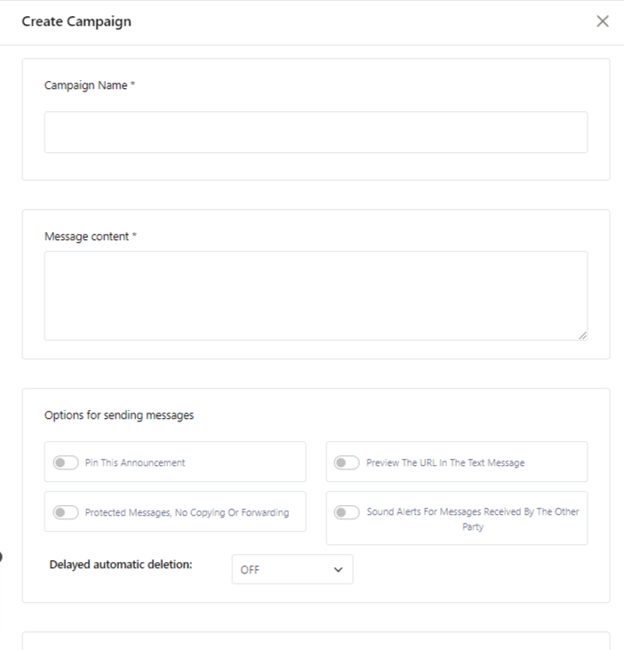 - Campaign Name: Give your messaging campaign a unique name for easy identification.