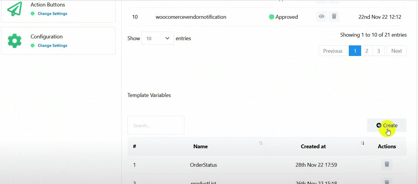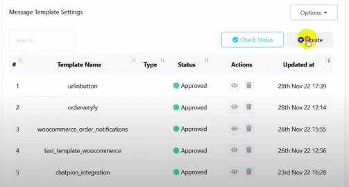 Click on the “Create” button under the message template settings.