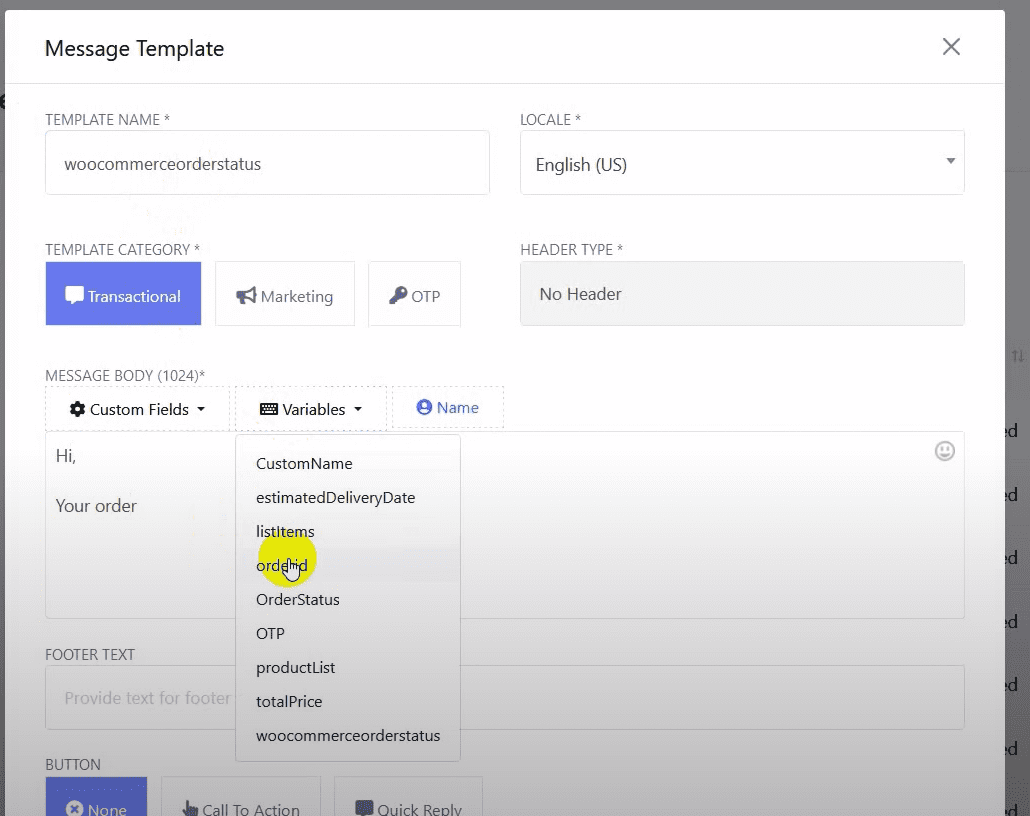 Before creating the template, create a variable for the order status.
