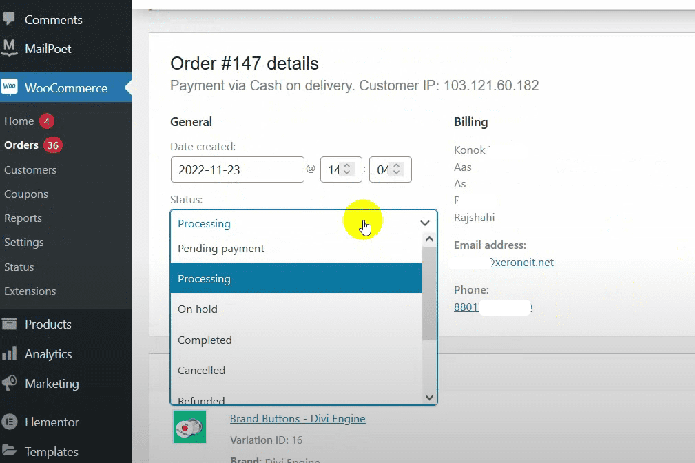 Go to the WooCommerce store and change the order status from “Processing” to “Completed”.