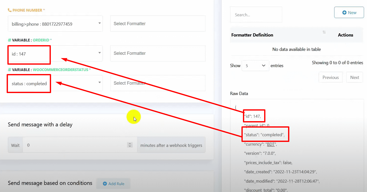 (Optional) Use formatters for phone numbers to remove any plus sign or dash.