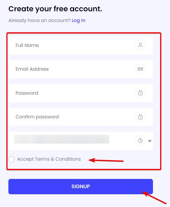 1. Direct your customer to the page to create a new account. You must complete all the form details and finally click on the Sign up button.