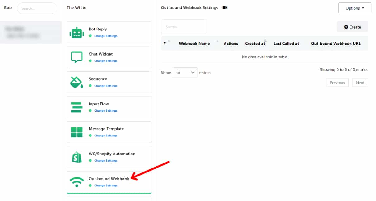 Navigate to the Outbound Webhook Settings section in your application or service.
