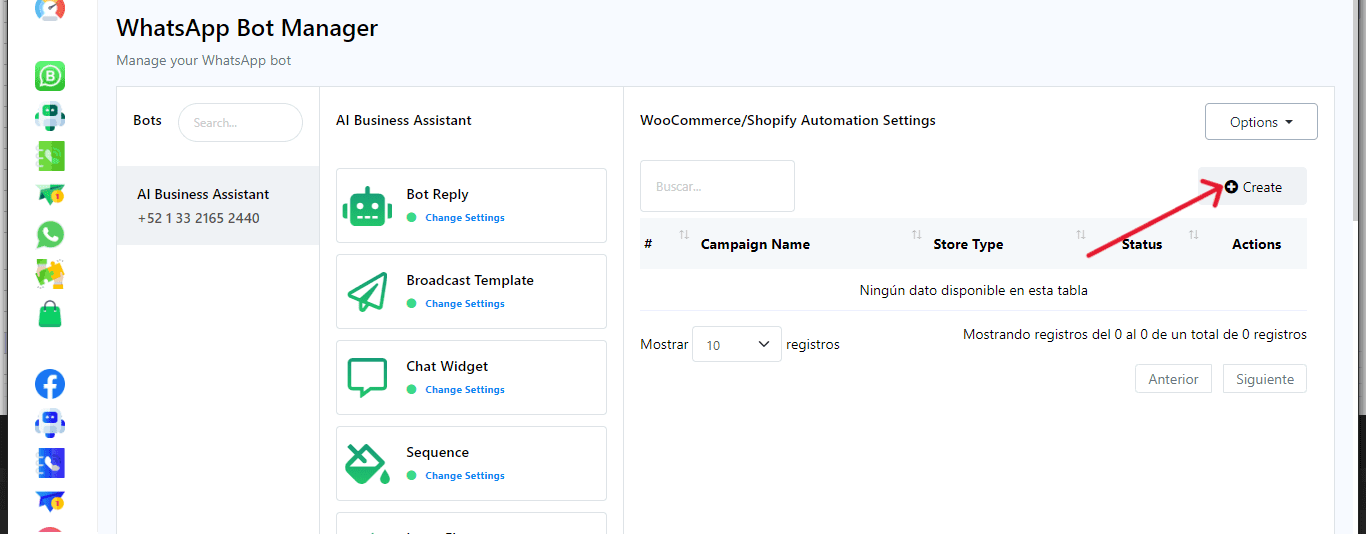 In your main panel, click on WhatsApp Bot Manager.