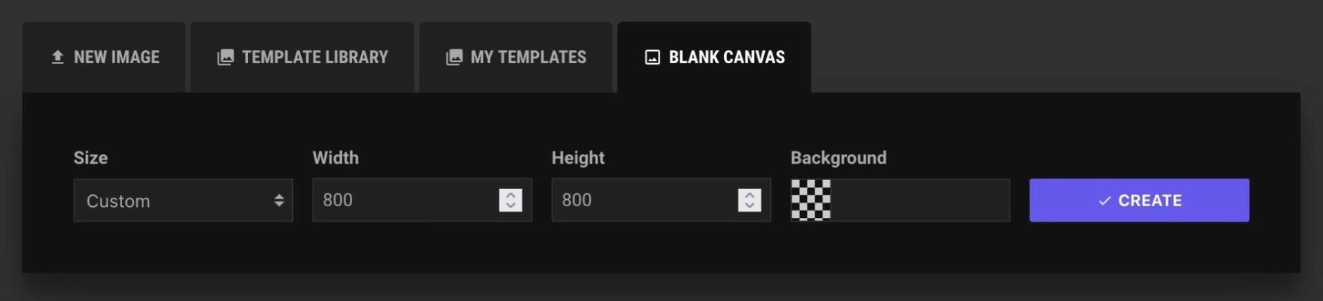 Click “Blank Canvas” tab. Set the dimention, select a background color and click create button.