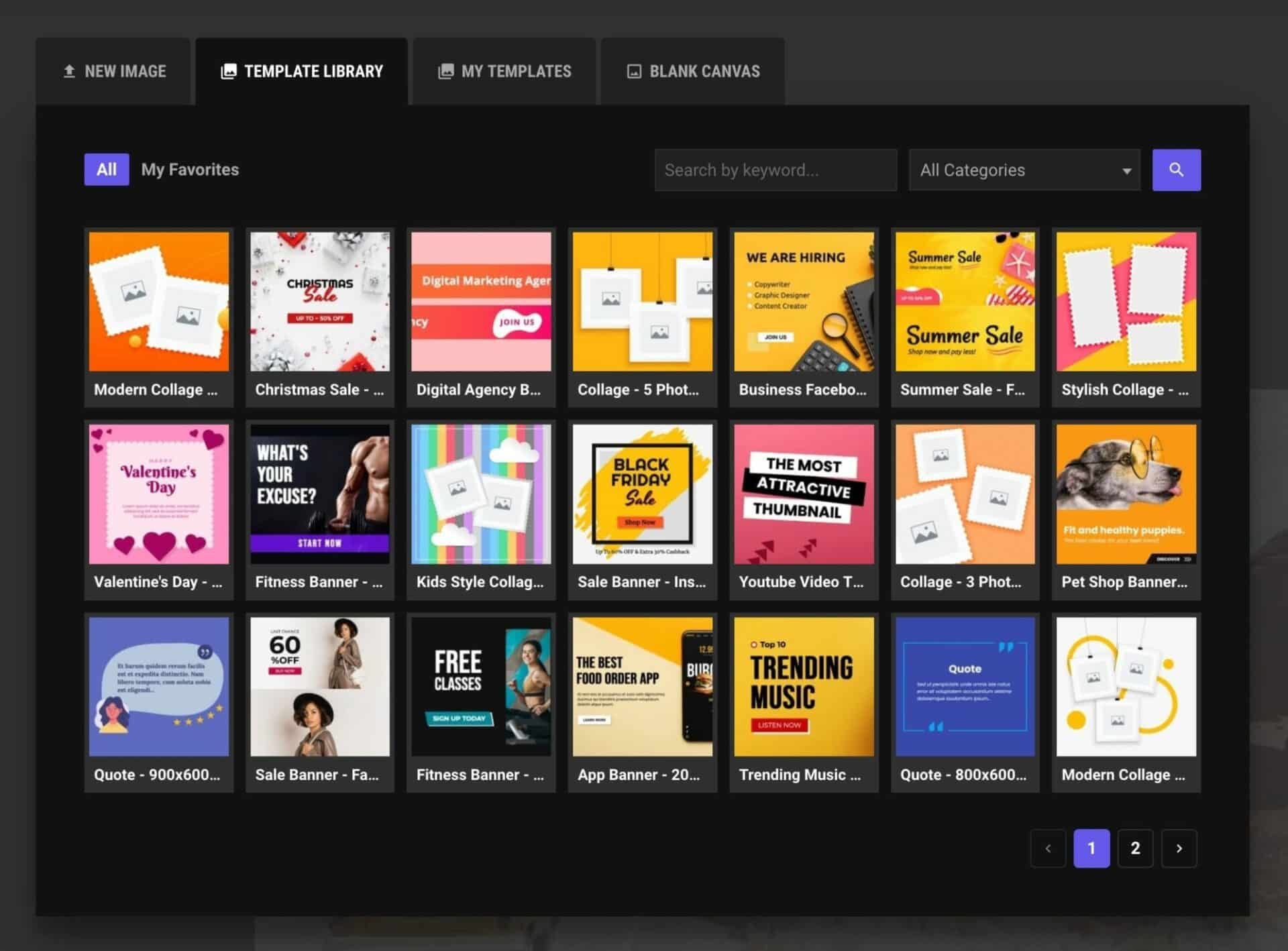 Template library tab: You can find our template collection on this tab. Just click on the template to add it to the canvas.
