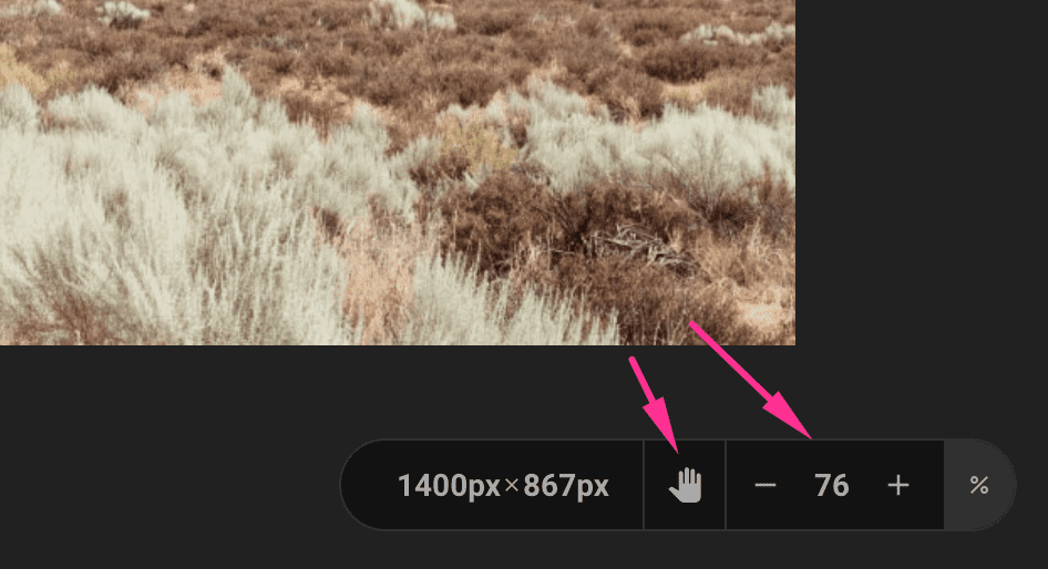 To pan the image, click “hand” icon and drag&drop the image as you want. When you are done, don’t forget to click “hand” icon again to make the layers selectable again.