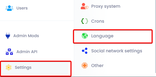 Login to your admin account. Once again, click on ‘Settings’ and then on ‘Language’.