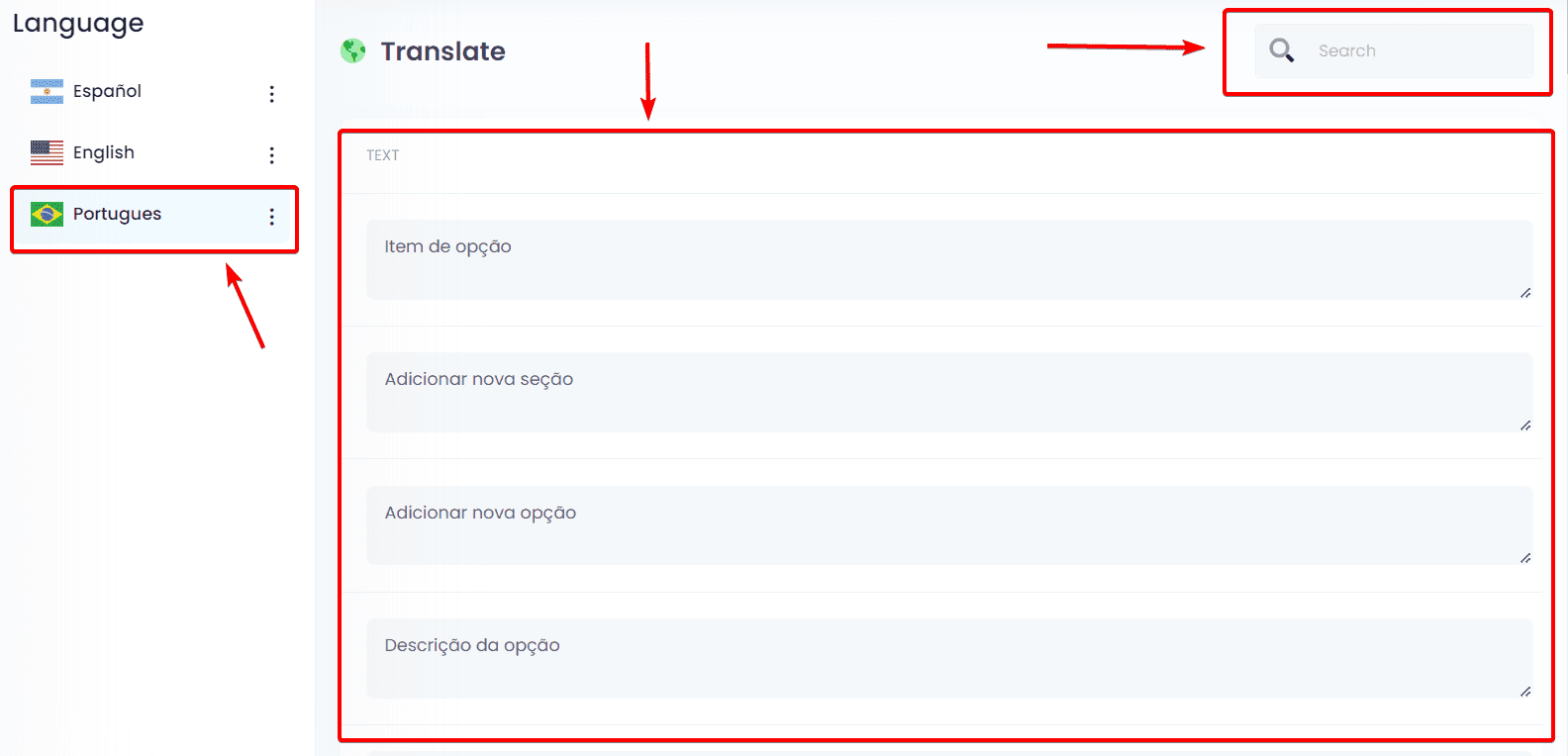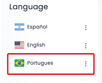 You’ll see a dropdown list with the languages available on your platform. There, you select the language you added (in our case, Portuguese), and the page will reload, now in that language! Super easy, right?