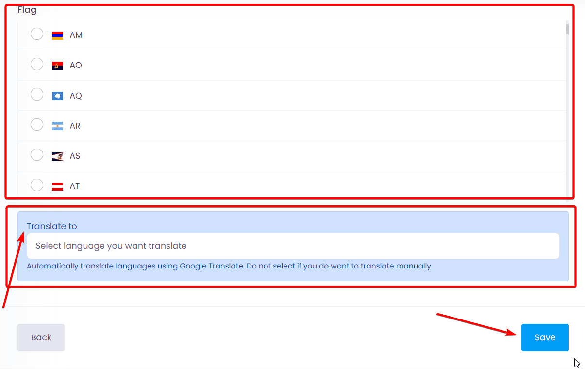 Add the language. At the bottom, on the ‘Translate to‘ field, you can choose the language for automatic translation by Google. This step is essential for the translation to be effective.
