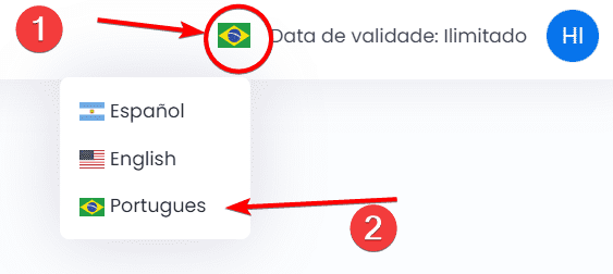 In this case, we have added Portuguese. Finally, to select the language and have the entire platform translated, click on the flag icon that appears in the top right corner of the platform next to the validity of your plan.