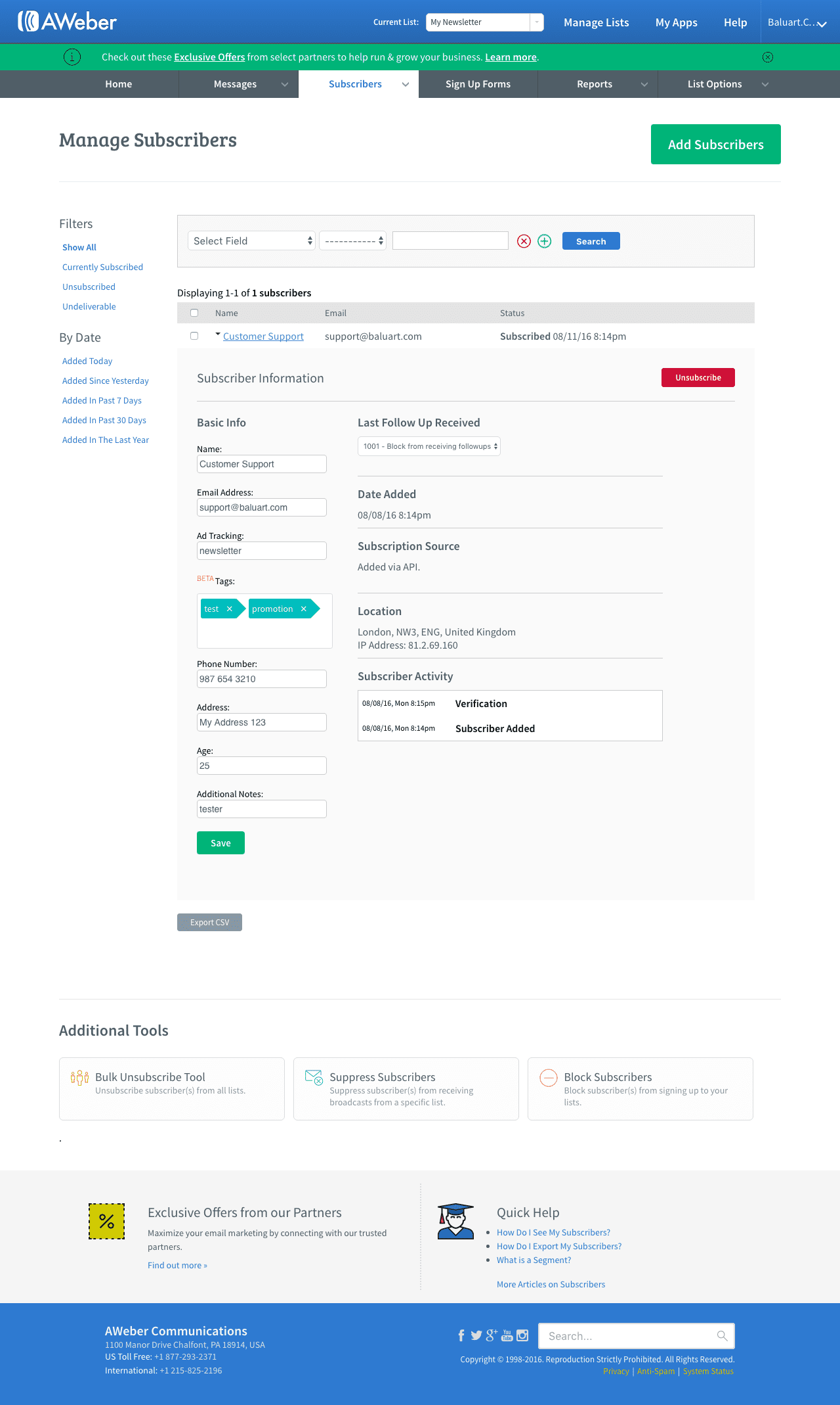 - Automatically send a double opt-in message to insure only legitimate subscribers are added.