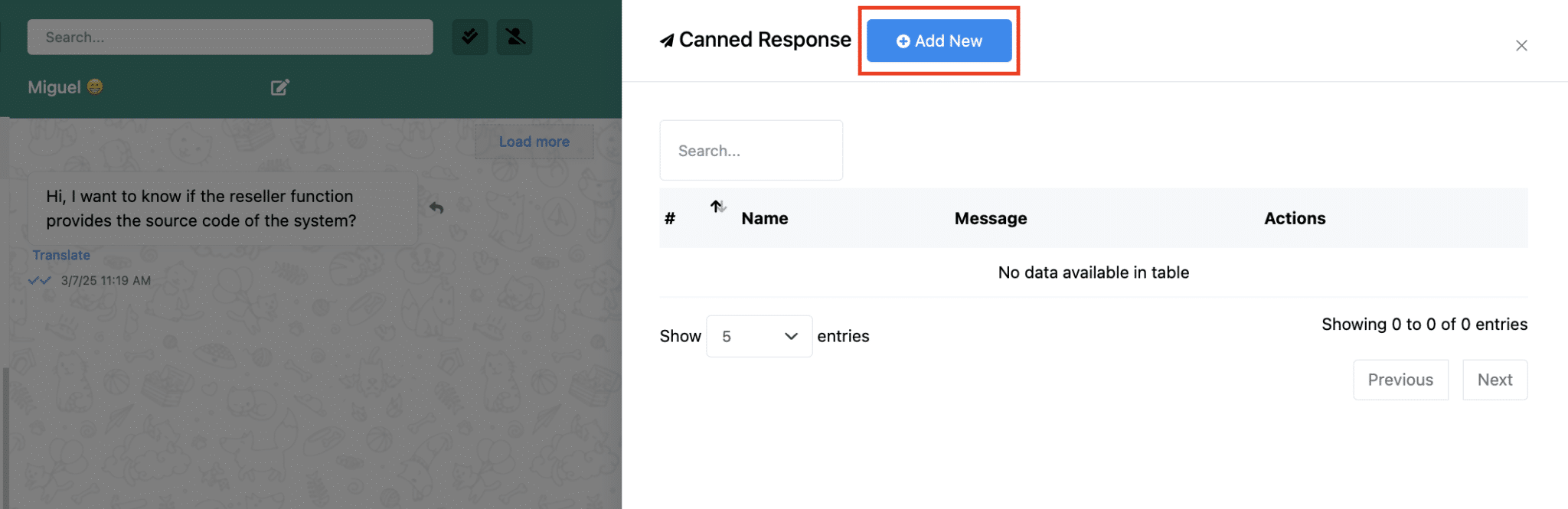 Create a New Canned Response. Click on the “Add New” button.