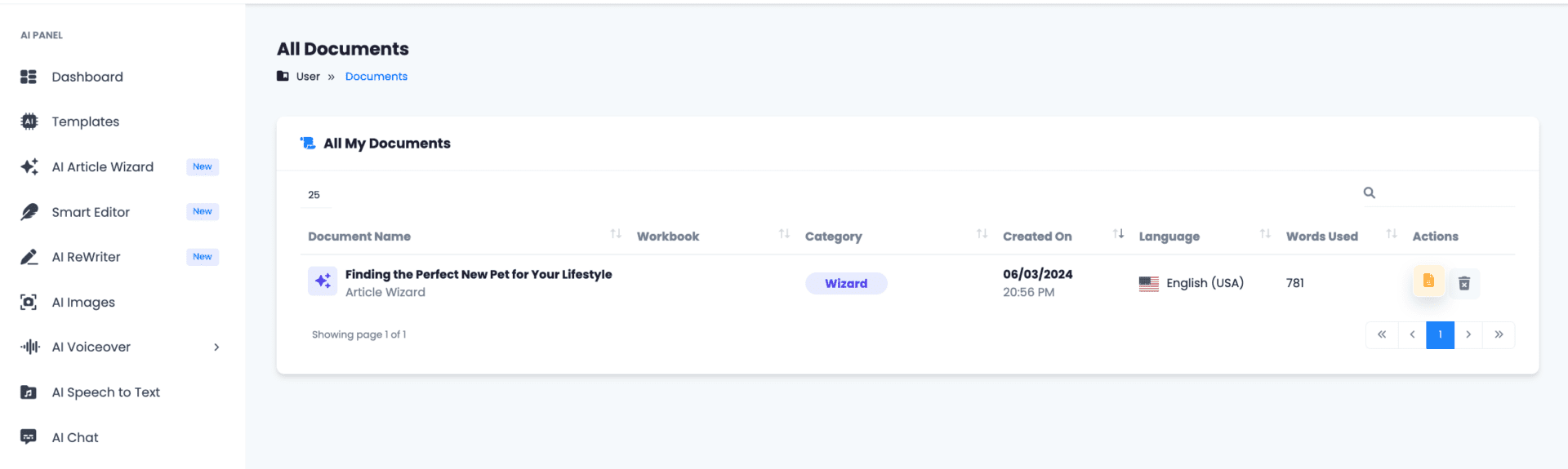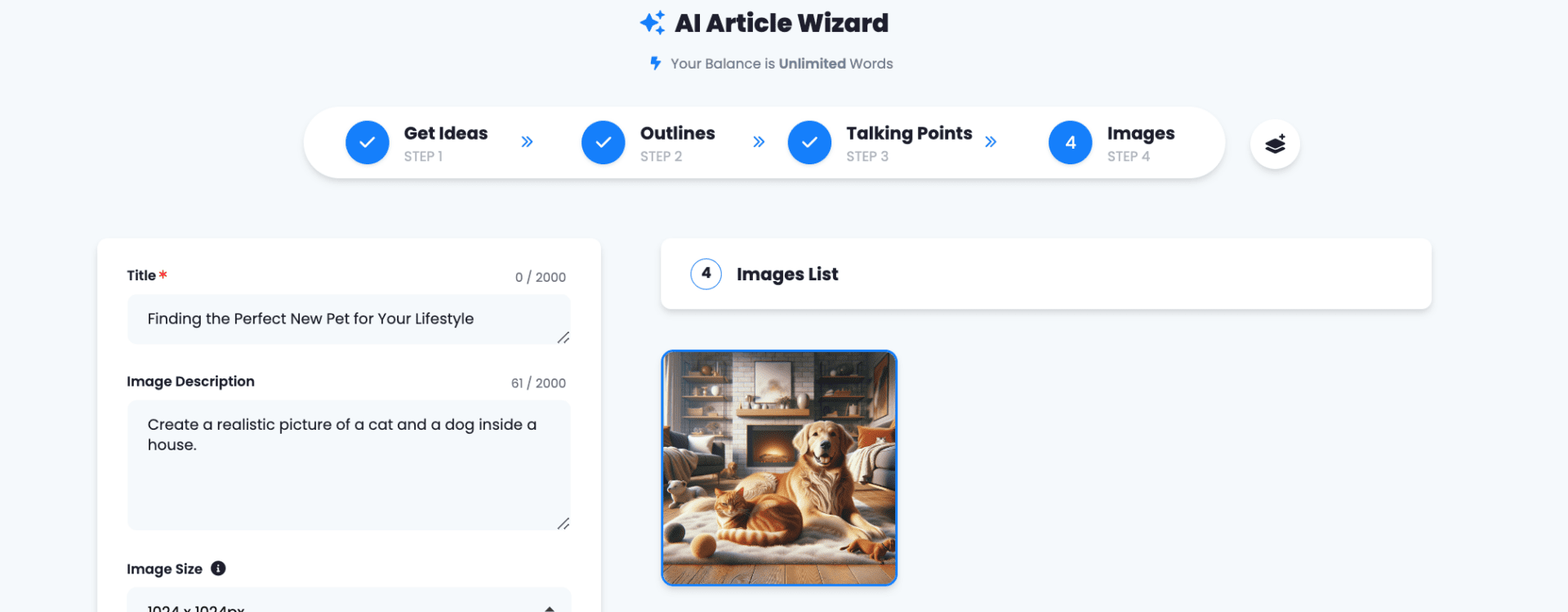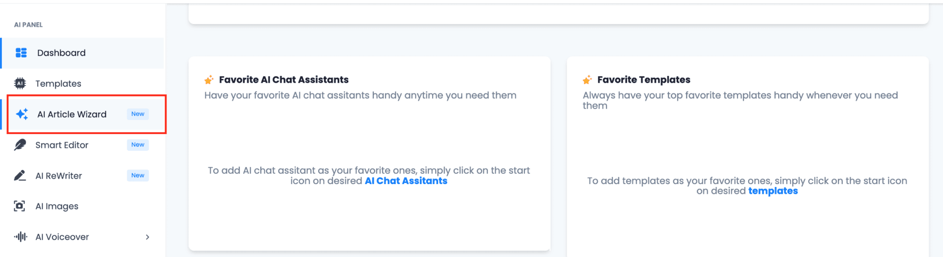 Log into the app. On the left sidebar, select “AI Article Wizard”.