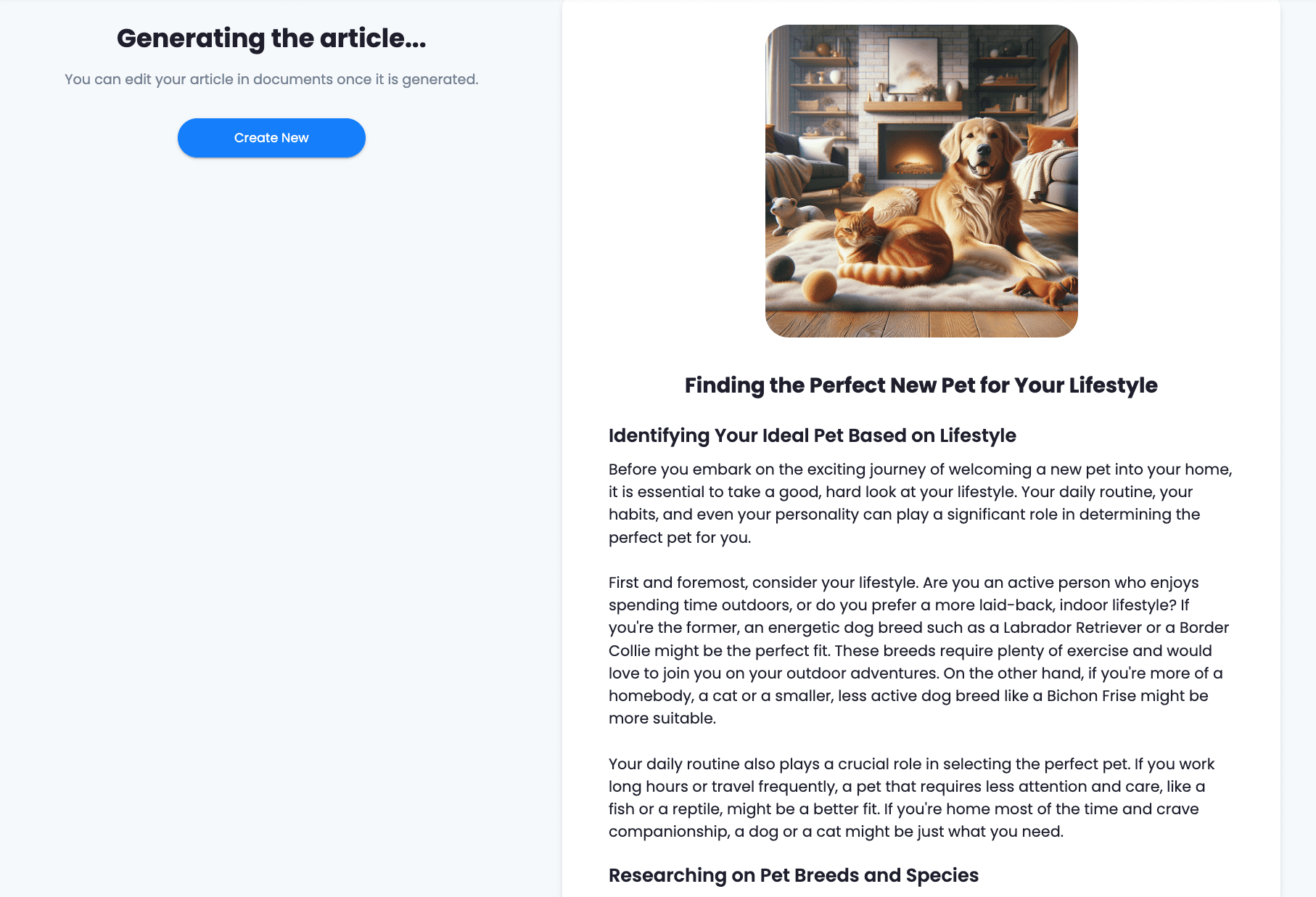 The AI will generate the final version of your article based on all the information you provided before. Wait a few minutes until it is complete.