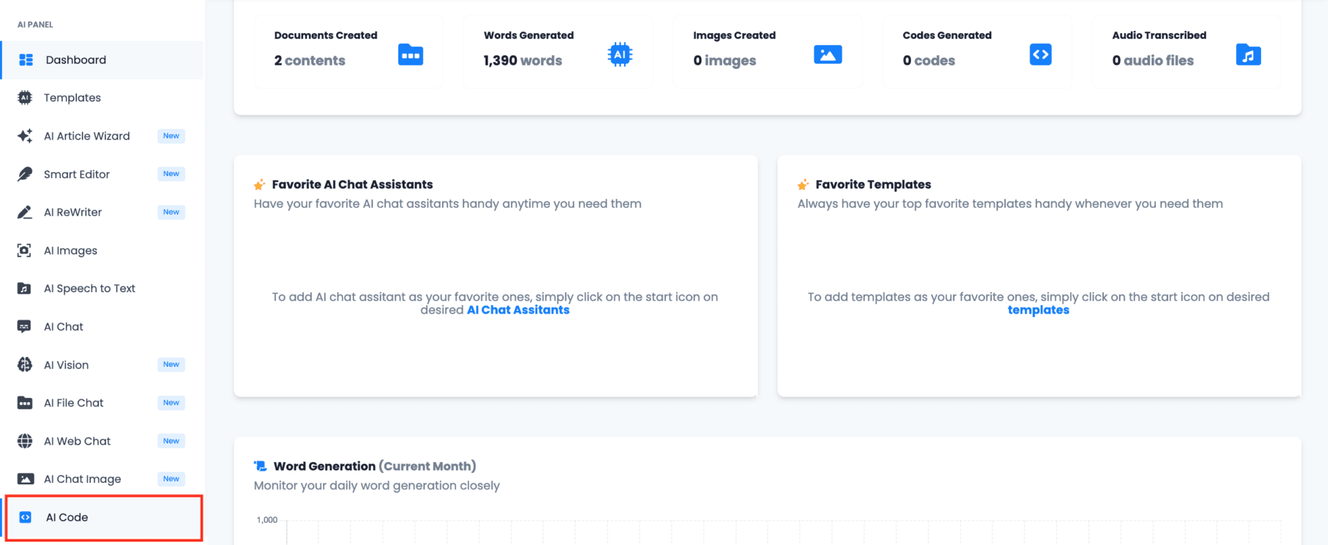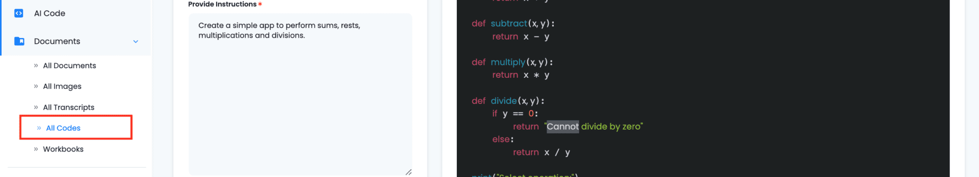 1.- Access to the app, and select ‘AI Code’ on the left sidebar.