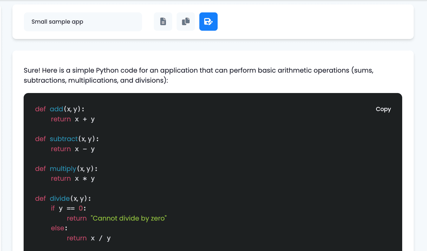 You can use the AI Code Generator inside the app to easily create pieces of code in 11 different programming languages, including Python, Javascript, PHP and HTML. Here are the instructions to use it.