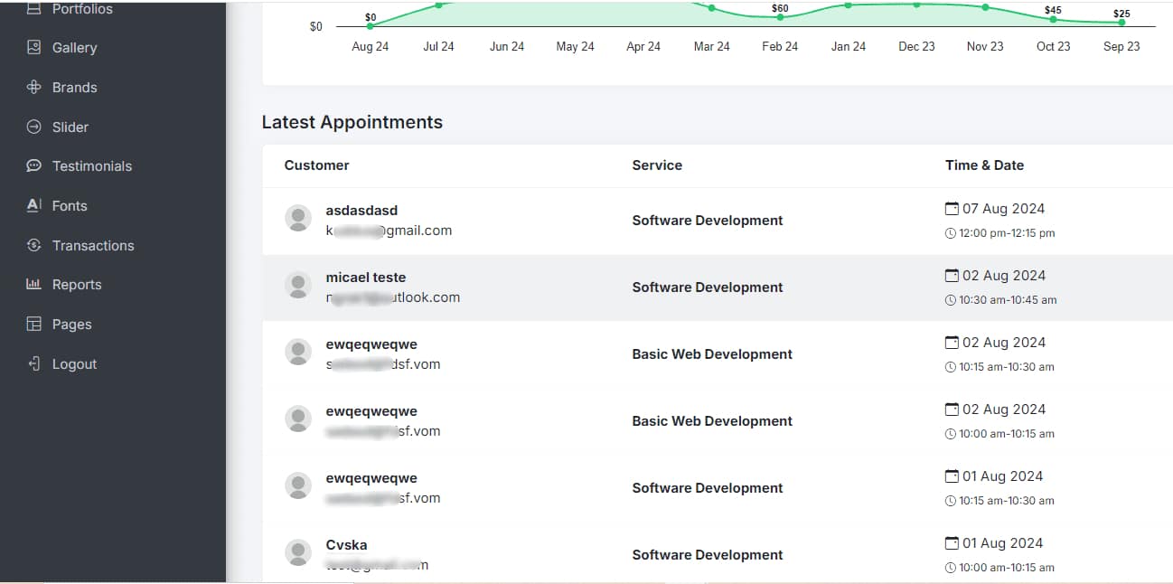 3.- A detailed table where your clients are registered, along with the services you offer them, and the date and time of each appointment.
